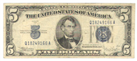 7-3/8 inches by 3 inches. Black with blue seal and black machined serial number. Green back without 1902-1908. Bust of President William McKinley, left.