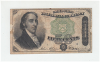 3-5/16 inches x ~2-1/8 inches. Black with red seal and thick key inside seal. Green back. Bust of William M. Meredith, left. Series of 1874. Printed at Bureau of Engraving & Printing.