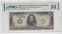 6-1/4 inches by 2-5/8 inches. Black with brown seal. Green back. Bust of Ulysses S. Grant, center. Signatures of Jones and Woods.