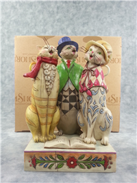 Heartwood Creek Collection. Cat Snowman Figurine. Circa 2008. Sculpted in stone resin. Designed by Jim Shore. Produced by Enesco. 7-7/8 inches tall. 5-1/4 inches wide. 3-5/8 inches long.