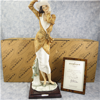 Marina Statue on a mahogany plinth by Sculture d'arte of Florence, Italy. Circa 1994. Numbered Limited Edition. Giuseppe Armani designed and hand-painted in Tuscany in 'C' finish with brilliantly luminous, full-color finish requiring different kinds of painterly skills and sensitivity that are needed to achieve artistic levels which enhance an Armani sculpture.