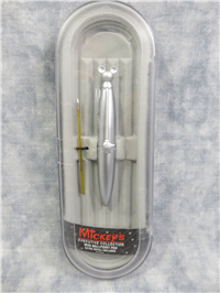 Approximately 5 inches long and 1/4 inch wide. The design features etched gold Mickey Mouse heads on a smokey silver background. Anson fine writing pen, licensed by Disney.