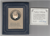 Complete set of two large 63mm (2 3/8 inches) diameter medals, one bronze, one 999 fine silver, issued to commemorate the journey to China by Richard M. Nixon. Housed in a deluxe display case and with certificate of authenticity from The Danbury Mint.
