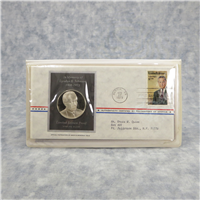 This official bicentennial medal honors the visit of the President of the Republic of Finland to the United States. It is the identical size (51mm) and design that was presented to the Honorable Urho Kekkonen, President of the Republic of Finland, in honor of his Official Bicentennial Visit to our nation's capital. This medal was minted by the Franklin Mint and is certified August 3, 1976 guaranteed to contain 750 grains (48.6 grams) of solid sterling silver. Complete with certificate of authenticity and housed in a blue plastic wallet display.