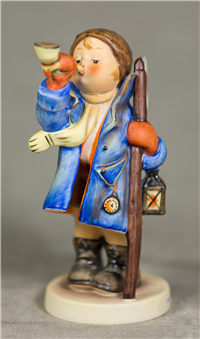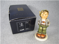 Hummel #109/0 is 5 inches tall. Base is incised 109/0. Goebel TMK 8 imprinted in blue ink. Colored imprints of German and United States flags. Artist hand-initialed and dated in black ink.
