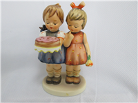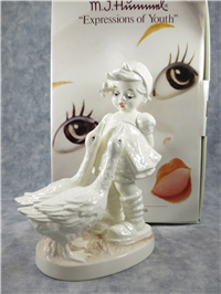 This special Memorial Tribute HUM 10/I in pure white over glaze was released in the fall of 1996. It comes with a handcrafted wooden display base with a commemorative brass plaque, and a special commemorative back stamp, which reads: "A Memorial Tribute 1909 * 1946 Sr. Maria Innocentia Hummel" in addition to the (TM 7) trademark.