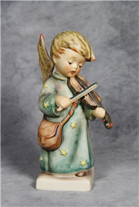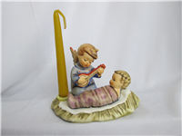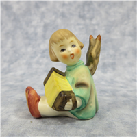 Figurine is 4 inches tall. Base is incised 2106 and 1999. Goebel TMK 8 trademark imprinted in blue on bottom of base. Painter hand-initialed and dated in black ink on bottom of base. Includes Musical Hummelscape from the Musikfest Collection "Christmas Time" Mark #1038-D (c) Goebel 2000. Scape is 5-1/2 inches tall and plays "Joy to the World".