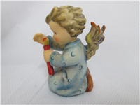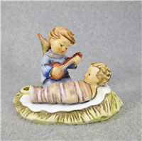 Size: 3-1/2” X 5” to 6-1/4” X 8-3/4”. Records show that this figurine was first modeled in 1935. Both Arthur Moeller and Reinhold Unger are given credit. Variations are found in size and construction of socket for candle on size 24/I. Old name: “Cradle Song.” Also made without hole for candle (See HUM 262). Sometimes incised 24/3 instead of 24/III. In the spring of 1982 the large size (24/III) was listed by Goebel as “Temporarily Withdrawn,” to be possibly reinstated at a future date. The small size (24/I) also was “Temporarily Withdrawn” from production on 31 December 1989, but was once again listed on the 1997 pricelist. The small size was again listed as (TW) in January 1999. Both the large size (24/3) and the small (24/I) have been found in Belgium in white over glaze in the (TM2) “full bee” trademark.