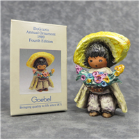 Measurements: Figurine 4 1/4"H. Display 5-1/4"L x 3 1/2"W x 5"H. It's label reads, "Generations of Excellence, Mark # 1042-D, © Goebel 1999.