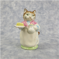4 inches tall by 1-5/8 inches wide by 2-3/4 inches long. Shape Number: 1092. Modelled by Arthur Gredington. 1st version with purple shawl and dark blue bonnet. Issued in 1947 and never withdrawn from production. Manufactured by Frederick Warne & Co, Beswick, England with the BP-3b backstamp used from 1974-1985.