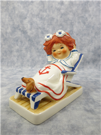 This Apple Tree Girl Doll was released in 1998 and is Goebel's continuation of the doll series began by Danbury Mint. Like the Apple Tree Boy Doll, this doll is costumed by world renowned doll designer Bette Ball and is seated in it's own tree display stand, detailed with apples, apple blossoms, and even a friendly bird. Master sculptor Marion Huschka modeled it in 1996.