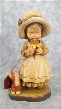 The figurine is 3-1/4 inches tall. Base is incised 2219 and 2004. Goebel TMK 8 trademark imprinted in blue on bottom of base. Foll-color sunflower also imprinted on base. Artist signed, hand-initialed and dated in black ink.