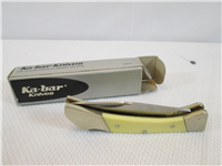 3-5/8 inches closed. 6-3/8 inches open. "Ka-bar 1152 U.S.A." tang stamp. Single Oval 'Ka-bar" shield. Jigged delrin handle. Nickel Silver bolsters. Brass liner.