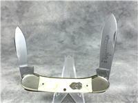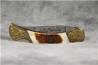 Limited Edition #131 of 600. 4-1/8 inches closed. 7-3/8 inches open. Made in Germany. 'Burnt Chimney' with Logo and 'Germany Stainless' tang stamps. Circle Burnt Chimney Logo shield. Stainless Steel blades. Master blade etched "1992 NKCA YOUTH KNIFE". Burnt Jigged White Bone handle. Nickel Silver bolsters. Brass liner.