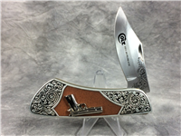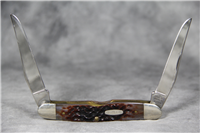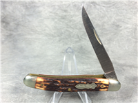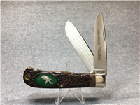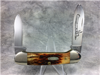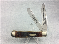 There were 100 of these knives in this edition. Peachseed jigged Dark Red Bone handle. Long Tail C serialization. Duck shield. Mirror-polished Tru-sharp blades. The main blade is imprinted with 'World Leader in Wetlands Conservation' while the Spey blade is imprinted with the Ducks Unlimited and the 75th Anniversary logo. Nickel Silver bolsters. Brass liner.