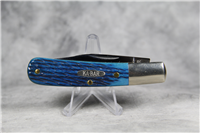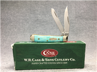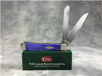 2-1/2 inches closed. 4-3/8 inches open. Made in USA. " x*x CASE XX x x x " (with lightning bolt S) and "USA 62154 SS" tang stamps. Stainless Steel blades. Caribbean blue smooth bone handle. Oval long-C script "Case XX" shield. Nickel silver bolsters. Brass liner.