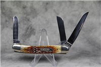3-1/2 inches closed, 6 inches open. Made in USA. Master blade front tang: 'Case Brothers - Bradford PA - 19 USA 93'. Master blade rear tang: 'TESTED XX 53083'. Second and third blades front tangs: 'Case Bros. - Tested XX - Bradford, PA'. Gimp-shaped shield with 'Case'. Stainless steel blades. Master blade stamped with large 'XX'. Stag handle. Nickel silver bolsters. Brass liner.