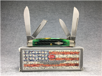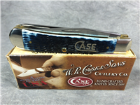 3-1/2 inches closed. 5-7/8 inches open. Made in USA. " x x x Case XX *x*x* " (with lightning bolt S), "SS", "TESTED XX", and "USA 64052 SS" tang stamps. Diamond closed-C script "Case xx" shield. Stainless Steel blades. Kentucky Bluegrass green/blue jigged bone handle. Nickel Silver bolsters. Brass liner.