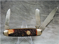 1998 NKCA Youth Limited Edition 1 out of only 700 made. 3-1/8 inches closed. 5-1/4 inches open. Made in USA. "CASE XX USA ** " (2 dot with lightning bolt S) and "USA 62109X SS" tang stamps. Oval "CASE-XX" shield. Stainless steel blades. Master blade etched "1998 NKCA Youth Knife 1 of 700". Jigged Chestnut bone handle. Nickel Silver bolsters. Brass liner.