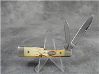 Made in USA by Queen Cutlery. 4-1/8 inches closed. 7-1/2 inches open. Queen logo "76" tang stamp. Master blade etched "Queen Steel #24 MADE IN U.S.A.". Imitation winterbottom bone handle. Nickel Silver bolsters. Brass liner. No box.