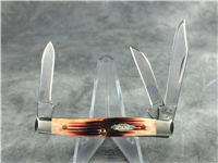 Set of three 3-Blade. 3-1/4 inches closed. 5-3/8 inches open. Made in USA. "CASE XX BRADFORD, PA MCMXCV", "SS" and "SC6308 SS" tang stamps (The red and green ones have an "R" or "G" at beginning of model numbers on tang stamps). Double oval 'open C' CASE shields. Stainless Steel blades. Second Cut Bone handles. Nickel Silver bolsters with serial on front left bolsters. Brass liners.