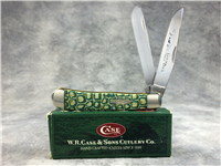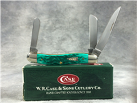 3 inches closed. 5-1/4 inches open. Made in USA. " x x Case XX x x " (with lightning bolt S) and "USA 610096 SS" tang stamps. Inlaid oval C shield. Stainless Steel blade. Kentucky Bluegrass green/blue jigged bone handle. Nickel Silver bolsters. Brass liner.