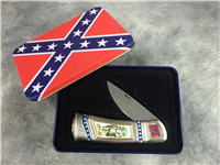 4-1/4 inches closed, 7-1/4 inches open. "STAINLESS CHINA" tang stamp. Very ornate handle with with image of General Robert E. Lee. Blade etched "THE BATTLE OF Fredericksburg, Virginia December 13, 1862". Comes in a gift tin with an image of the Confederate flag on the lid.