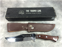 Fixed Blade Hunters Knife, item #1134505. Limited Edition #137. 8-1/2 inches long. Made in USA. "CANAL STREET CUTLERY CO. USA" tang stamp. Round CS shield. D2 Stainless Steel mirror-polished blade. Antique smooth bone handles. Stainless steel bolsters. Front bolster etched with serial #137. With original box, sheath, and paperwork.
