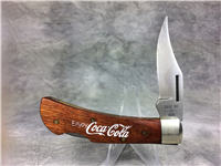 Limited Edition. 4-1/8 inches closed. 7-3/8 inches open. Made in USA. 'Case XX ********* USA' (9 dot with lightning bolt S) and '3254' tang stamps. Single-oval open-C "CASE" shield. Chrome vanadium blades. Yellow Composition handle etched in red: "ENJOY Coca-Cola" on front and "GAINSVILLE, GA 1981" on back. Nickel Silver bolsters. Front right bolster etched with . Brass liner.