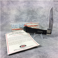 One of a 4-knife series commemorating the Case brothers. Limited edition #0463 of only 1000 produced. 4 inches closed. 7 inches open. Made in USA. "CASE BROS. CUTLERY CO." and "USA 6249 SS" tang stamps. Plain badge shield. Stainless steel blades etched with signature of Jean Case and "CASE BROTHERS". Red jigged bone handle. Nickel Silver bolsters. Front right bolster etched with long-C logo and serial #0463. Brass liner. Comes in an engraved wood box with medallion, paperwork, and certificate of authenticity.
