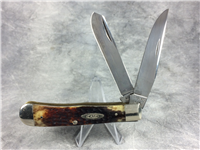 3-7/8 inches closed. 6-5/8 inches open. Made in USA. "CASE TESTED XX" tang stamp. Double oval 'open C' CASE shield. Chrome vanadium blades. Jigged bone handle. Nickel Silver bolsters and liner.