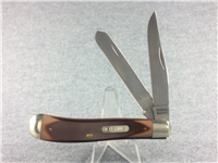 Single Blade Slimline Trapper. 4-1/8 inches closed. 7-3/8 inches open. Made in USA. "CASE XX STAINLESS USA" tang stamp. Double Oval 'Open C' CASE shield. Stainless steel blades. Red/Brown Jigged Bone handle. Nickel Silver bolsters. Brass liner.