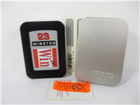 ZIPPO #23 Winston Car Lighter circa 1998. Brushed Chrome finish over Solid Brass. Standard size 1-7/16 inches wide by 2-1/4 inches high. Bottom of lighter reads: H Zippo XIV Bradford, PA. Made in U.S.A. Includes original F/XIV insert.