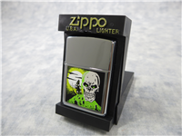 ZIPPO Grim Reaper lighter circa 2005. Black Matte finish over solid Brass with color printed design on front. Standard size 1-7/16 inches wide by 2-1/4 inches high. Bottom of lighter reads: C Zippo 05 Bradford, PA. Made in U.S.A. Includes original, unfired insert.