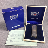 Vintage MARUMAN Lighter. Brushed Silver Nickel. Measures 2-7/8" tall x 1" wide x 1/2" deep. Bottom of lighter reads: Maruman DL-31 Made in Japan. With box, clamshell case, and paperwork.
