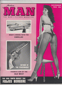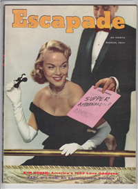 58 pages plus covers, standard size, side stapled. Black and white interior photos, a color centerfold of Bonnie Logan, as well as a full page color nude of Mamie Van Doren and one of Suzanne Bacaud.
