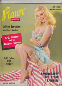 70 pages. Spiral bound. Two pages of interior color. Includes profile and nudes of Bettie Page (pages 28-31), Marilyn Monroe (pages 10-13 including nude), Sophia Loren Pages 14-16 including topless), Anita Ekberg (6-9 none nude), Jayne Mansfield (17-21 none nude), Eartha Kitt (22-23 no nudes), Betty Bromser (24-27 no nudes), also photo spreads featuring Lili St. Cyr, Lilly Christine, Evelyn West, Tempest Storm, Gwen Verdon, Mejla Ates, Monique Van Vooren, Meg Myles. Photography portfolios by De Dienes, Zoltan Glass and others.