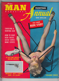 64 pages plus covers, standard size, side stapled. Black and white interior photos with a color centerfold of Bunny Bacon and several other color photos as well as an article on Jayne Mansfield.