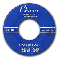 John Lee Booker. Chance 1110. Blues. Original 7 inch 45 RPM vinyl record circa 1952. I Love To Boogie coupled with Graveyard Blues.