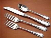 Price is for one each of Dinner Knife, Dinner Fork, Salad Fork, and Teaspoon. The pieces in this pattern are slightly lighter in weight than average.
