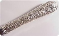 Solid sterling silver. With retailer name Daniel Low & Co. engraved on back of handle.