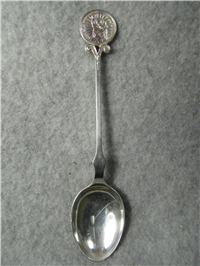 Solid sterling silver. Hallmarked "sterling" on both pieces. Spoon reads, "expulsis piratis restituta commercia" which translates to "Pirates were driven restored trade"