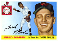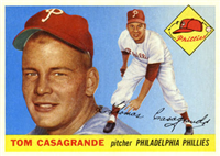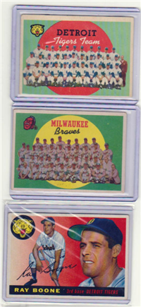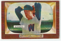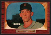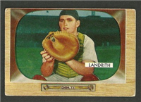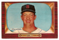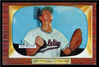 Bowman produced its final baseball card set as an independent card maker in 1955, a popular issue which has color player photographs placed inside a television set design. The set consists of 320 cards that measure 2-1/2" by 3-3/3" in size. High-numbered cards (#'s 225-320) appear to have replaced certain low-numbered cards on the press sheets and are somewhat scarcer. The high series includes 31 umpire cards.