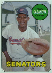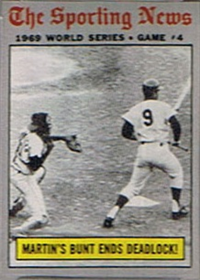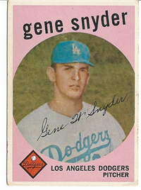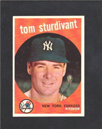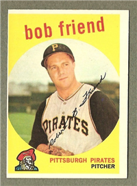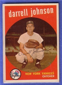 This card is one of 572 cards issued in the 1959 Topps card set--a set marking the larges tset issued to that time. The cards in this set measured 2-1/2" by 3-1/2" and they have a round photograph at the center of the front with a solid-color background and white border. A facsimile autograph is found across the photo. Card numbers below #507 have red and green printing with the card numbering white in a green box. On card numbers 507 and higher, the printing is black and red and the card number is in a black box. Specialty cards include multiple-player cards, team cards with checklists, "All-Star" cards, highlights from previous season, and 31 "Rookie Stars". There is also a card of the commissioner, Ford Frick, and also one of Roy Campanella in a wheelchair. A handful of cards can be found with and without lines added to the biographies on the back indicating trades or demotions; those without the added lines added to the rare and valuable and are not included in the complete set price. Card numbers 199 through 286 can be found with either white or grey stock being the less common.