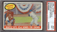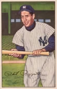 In 1951, Bowman increased the number of cards in its set for the 3rd consecutive year when it issued 324 cards. The cards are, like 1950, color art reproductions of actual photographs but now measure 2-1/16" by 3-1/8" in size. The player's name is situated in a small, black box on the card front. Several of the card fronts are enlargements of the 1950 version. The high-numbered series of the set (#'s 253-324), which includes the rookie cards of Mantle and Mays, are the scarcest of the issue.