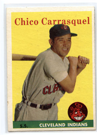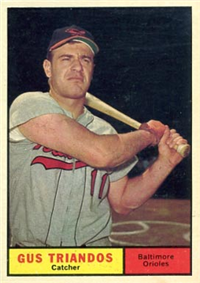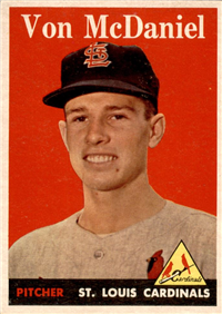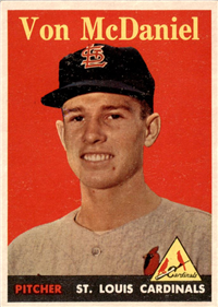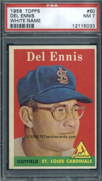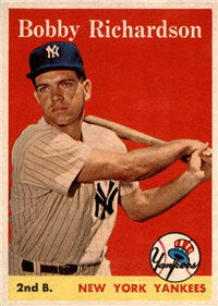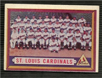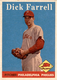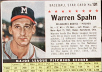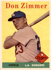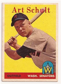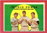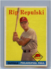 This card is one of the 494-card set released in 1958--as Topps continued to expand its set in size. One card (# 145) was not issued after Ed Bouchee Was suspended from baseball. Cards retained the 2-1/2" by 3-1/2" size. There are a number of variations, including yellow or white lettering on 33 cards between numbers 2-108 (higher priced yellow letter variations that are checklisted, are not part of the complete set prices). The number of multiple-player cards was increased. A major innovation is the addition of 20 "All-Star" cards. For the first time, checklists were incorporated into the numbered series, as the backs of team cards.
