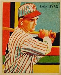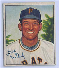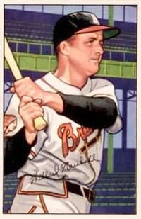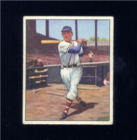 Bowman Gum Co.'s premiere set was produced in 1948, making it one of the first major issues of the post war period. Forty-eight black and white cards comprise the set, with each card measuring 2-1/6" by 2-1/2" in size. The card backs, printed in black ink on grey stock, include the card number and the player's name, team, position, and a short biography. Twelve cards (#'s 7, 8, 13, 16, 20, 22, 24, 26, 29, 30 and 34) were printed in short supply when they were removed from the 36-card printing sheet to make room for the set's high numbers (#'s 37-48). These 24 cards command a higher price than the remaining cards in the set.