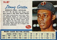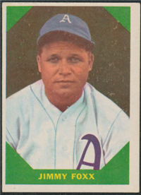 Over a two year period, Fleer issued another set utilizing the Baseball Greats theme. The 154-card set was issued in two series and features a color player portrait against a color background. The player's name is located in a pennant set at the bottom of the card. The card backs feature orange and black on white stock and contain player biographical and statistical information. The cards measure 2-1/2"by 3-1/2" in size. The second series cards (#'s 89-154) were issued in 1962.