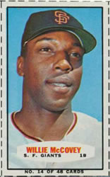 1 3/8" by 2 1/2" Numbered. Front: Black and white player photo with card number and player name below. Back: Advertisement.