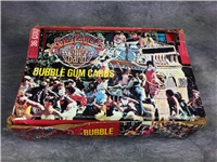 Box of SGT. PEPPERS LONELY HEARTS CLUB bubble gum wax trading card packs. One pack is missing, so there are 35 out of 36 packs. Each of the 35 packs contains 7 full color photos and 1 stick of gum. All 35 packs are unopened. Box measures 8-1/4" x 5-1/4" x 2-1/4". (c) 1978 Donruss and Stigwood Group, Ltd.